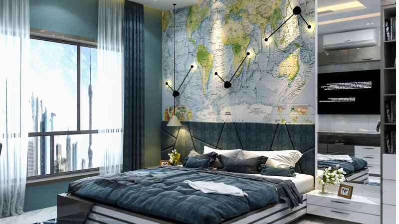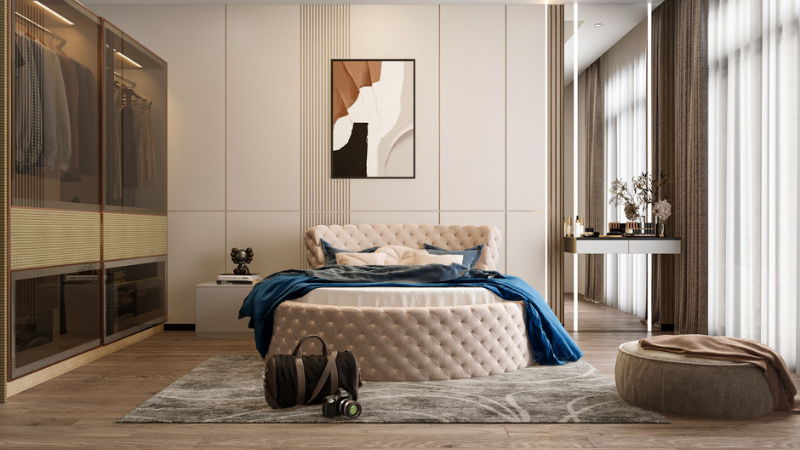 Modern bedroom designs focus on simplicity, soft colors, smart storage, natural textures, and ambient lighting to create relaxing, stylish spaces.